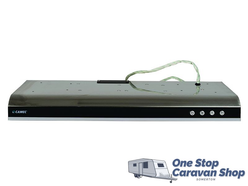 The Camec 12v, 2 speed Rangehood is made from durable Stainless Steel. Designed in Australia the range hood features twin turbo extraction fans and dual low energy, LED down lights. It features a removable filter for easy cleaning and illuminated touch controls. Venting is selectable rear or roof facing.