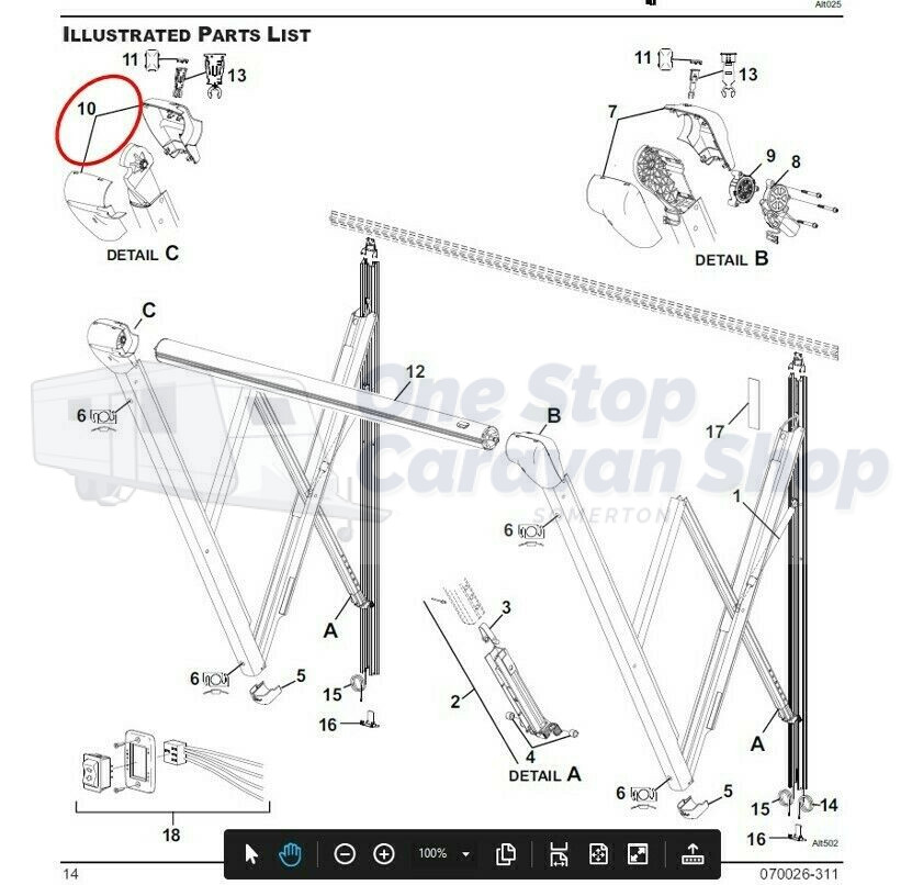 This is a replacement White Idler Cover Kit to suit the Carefree Altitude Awning, it is shown as #10 on the spare part diagram.
