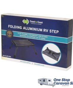 This folding aluminium RV Step features a light weight and sturdy design and can support up to 220kg. It has anti-slip strips and grippy rubber feet for extra stability.