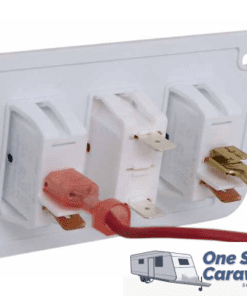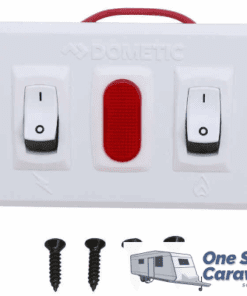 Double-panel on/off switch for your Dometic water heater. Operates both the gas burner and the electric heating element in your water heater. Mounts to the wall in your caravan or motorhome for easy access.
