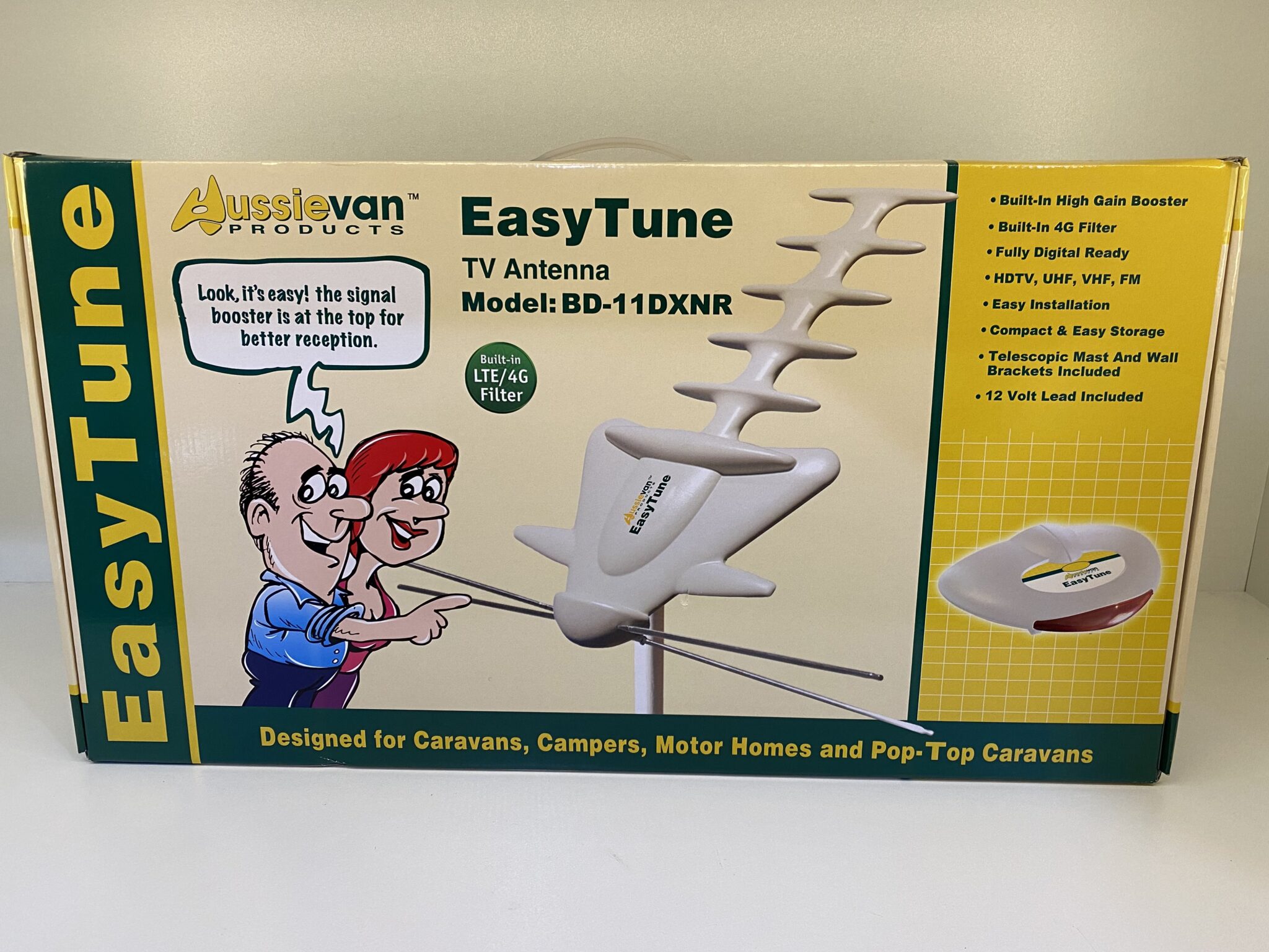 The Easy Tune Antenna is designed to be easy to setup. The antenna is compact and robust yet has superb performance for its size. It has a powerful, high gain signal amplifier providing excellent reception in fringe coverage areas, country towns as well as cities. The Easy Tune antenna is fully digital and specifically designed and optimised for mobile homes. The antenna is capable of receiving digital signals within the entire Australian TV broadcast spectrum.