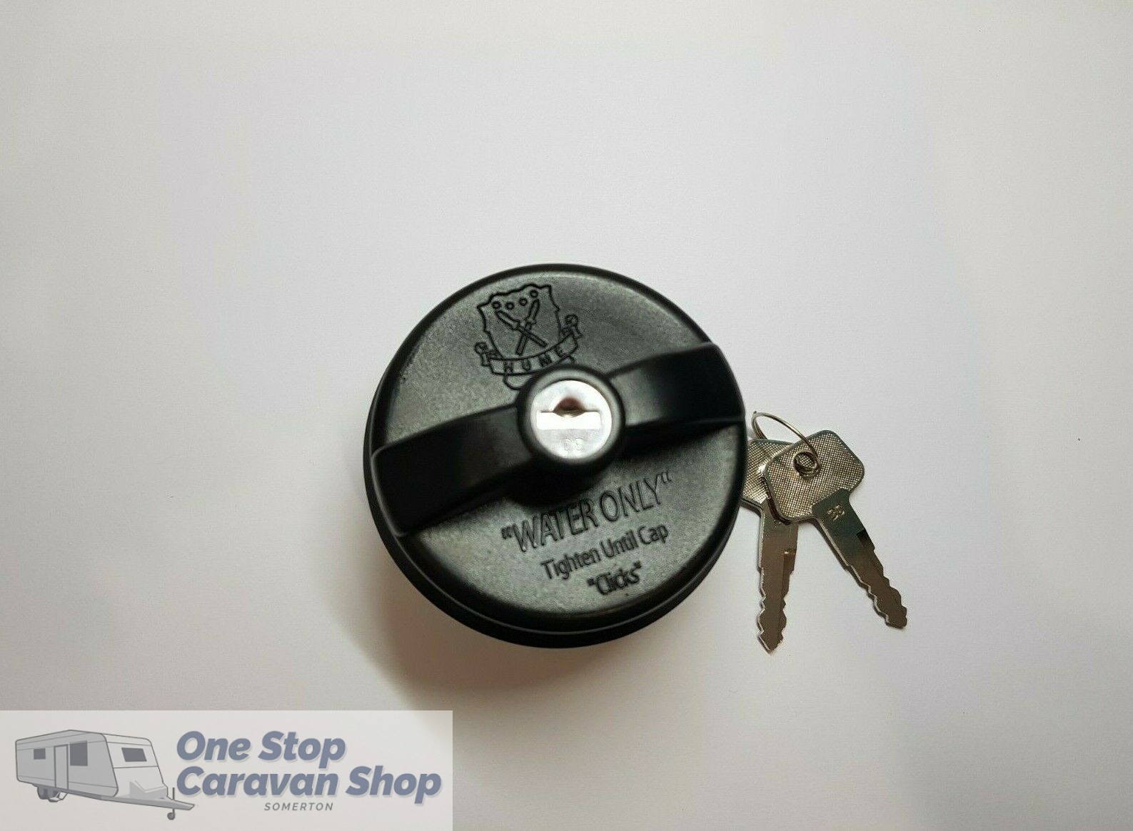 Hume water filler black screw on cap with 2 keys.