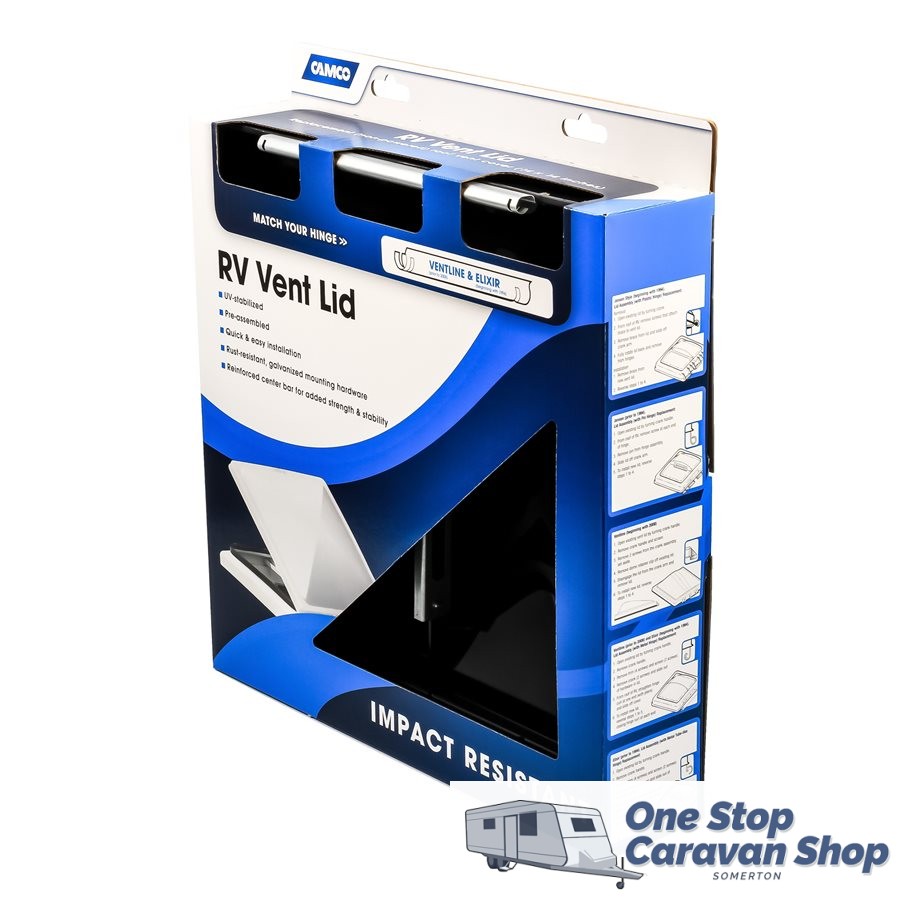 Camco’s Smoke Tinted RV Replacement Vent Lid is impact-resistant and comes preassembled. It includes all mounting hardware for quick, easy installation on 14″ by 14″ RV vents. The hardware is rust resistant and the vent lid is polypropylene. It fits the Vent line style pin pre-2008 and Elixir style pin 1994 and newer.
