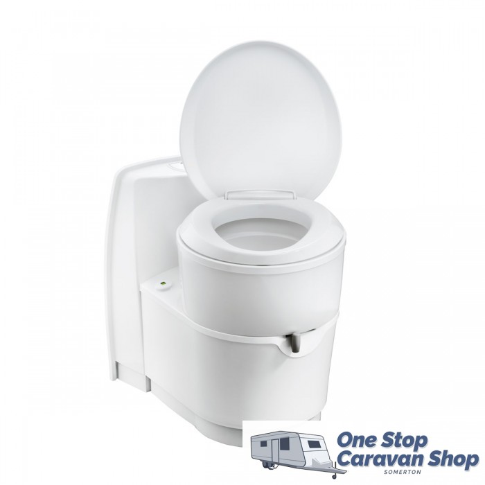 The Thetford C223 CS is a rear access cassette toilet with an electric flush which is plumbed to your caravan’s water tanks. It has a 18L removable waste cassette which includes built-in wheels and pull handle for effortless transportation to the dump point when required.