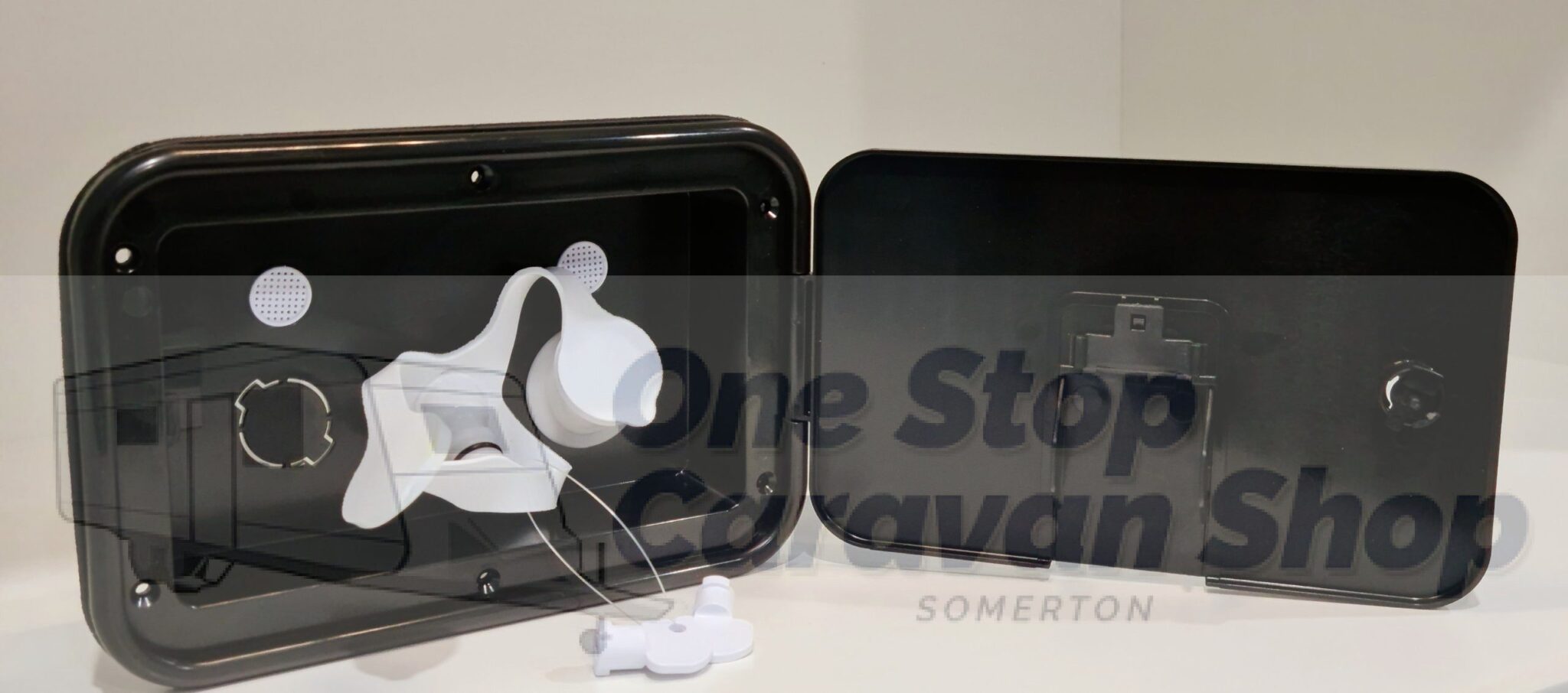 Water filler Inlet in Black, comes with two keys.